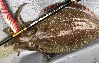 HR SKY BLADE 天刃 SBC-245/82 ,背重選用5兩鉛,作釣水深50~65M,8/2調的ACTION,對於花軟釣法來說也提供了足夠的感度,不管是鉛的敲底或是頭足類在捕捉到木蝦後特有的拔竿感,不外乎的明確不少,245這種8尺左右的長度對於將近一尋長的絲腳來說,水中木蝦的動作或是中魚後的揚竿開槍,都提供了足夠的揚程。